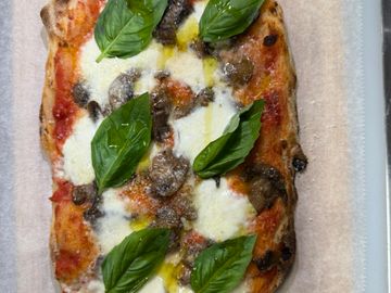 Tomato fresh mozzarella fior di latte, mix wild mushrooms, fresh basil, Pecorino Romano and extra virgin olive oil.