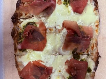 Fresh mozzarella fior di latte, ricotta, Prosciutto di Parma, Pecorino Romano and homemade pesto.